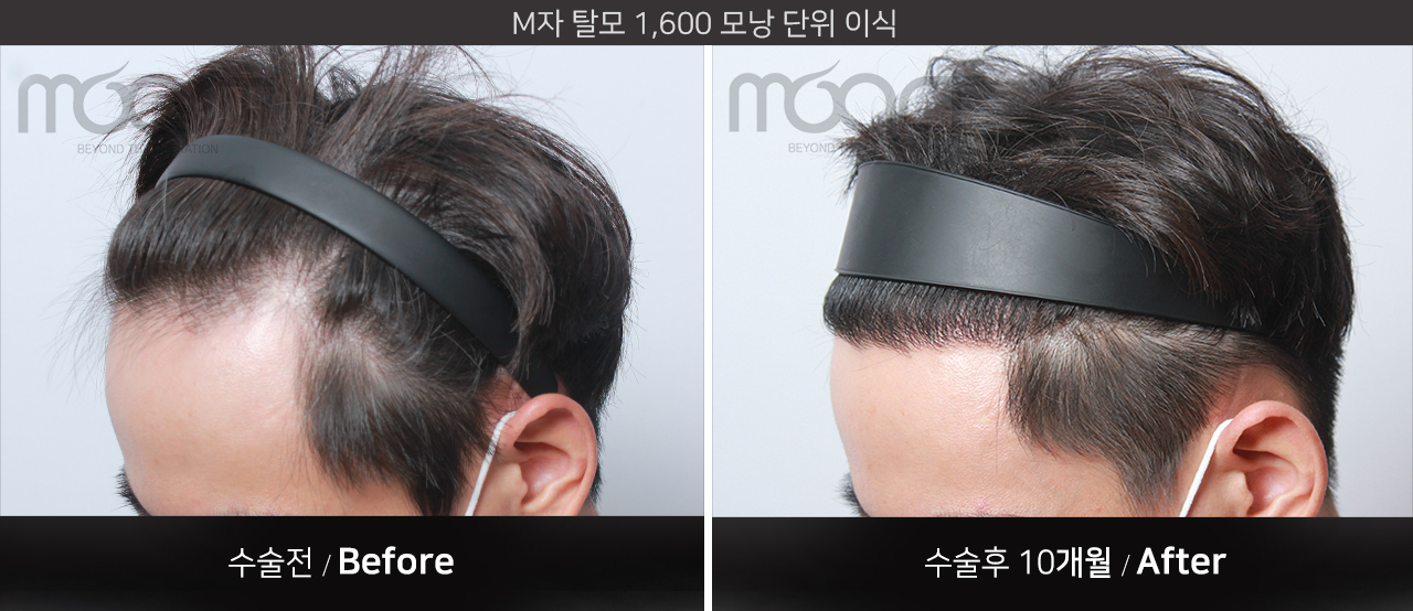모발 이식 전 -> 모발 이식후 10개월 경과