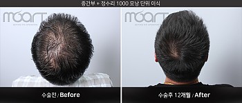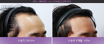 모발 이식 전 -> 모발 이식후 8개월 경과