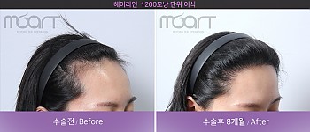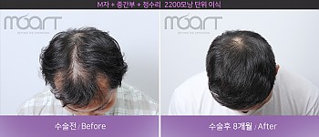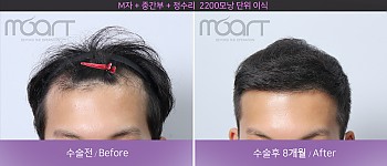 모발 이식 전 -> 모발 이식후 8개월 경과