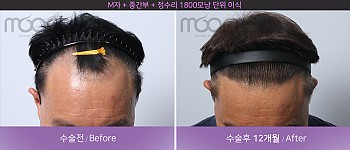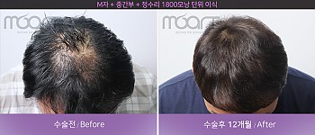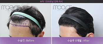 모발 이식 전 -> 모발 이식후 8개월 경과