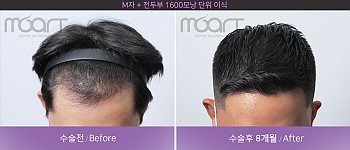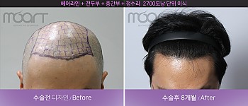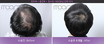 모발 이식 전 -> 모발 이식후 8개월 경과