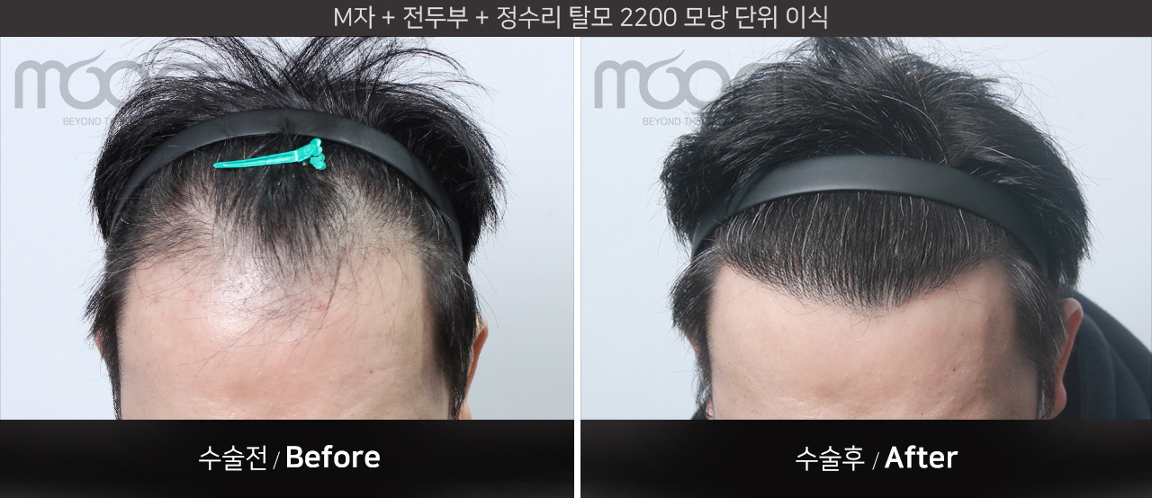 모발 이식 전 -> 모발 이식후 12개월 경과