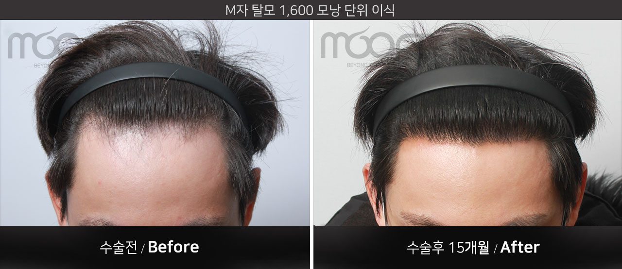 모발 이식 전 -> 모발 이식후 15개월 경과