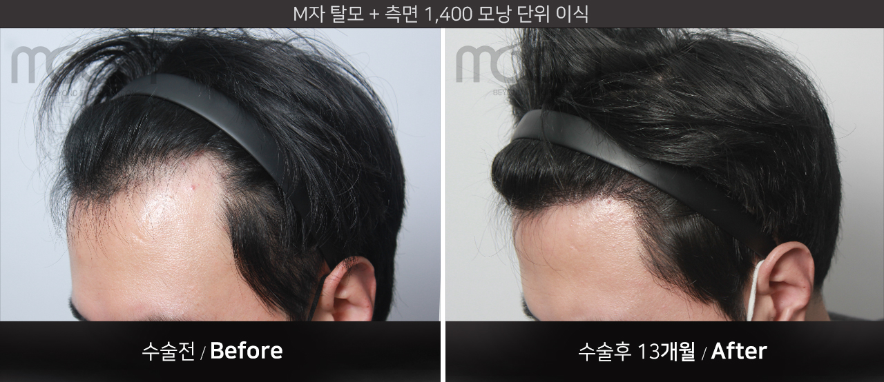 모발 이식 전 -> 모발 이식후 13개월 경과