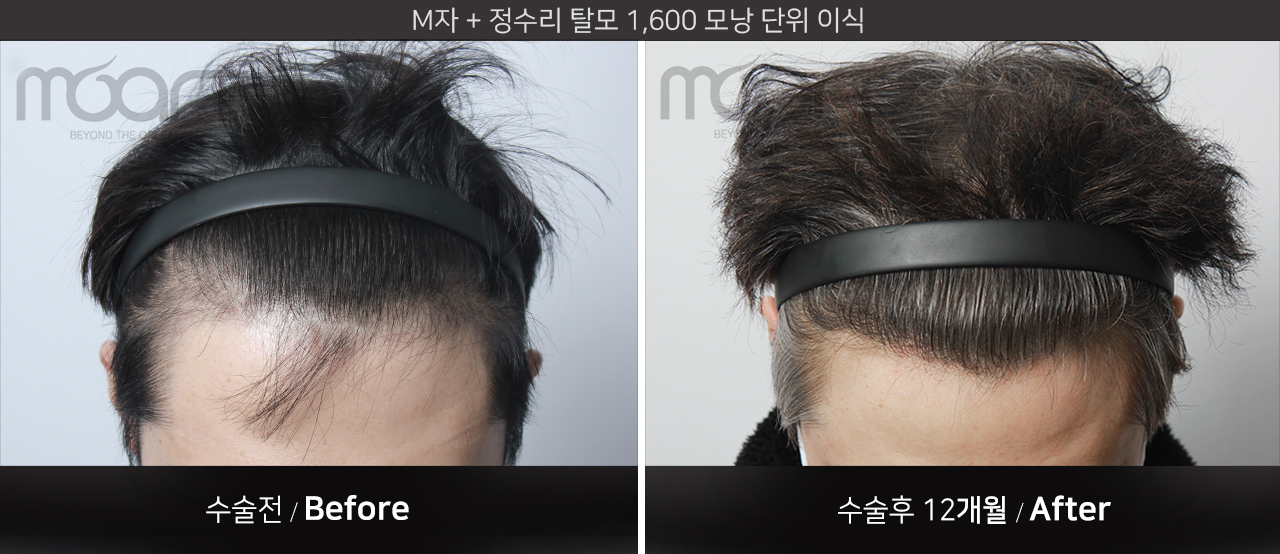 모발 이식 전 -> 모발 이식후 12개월 경과