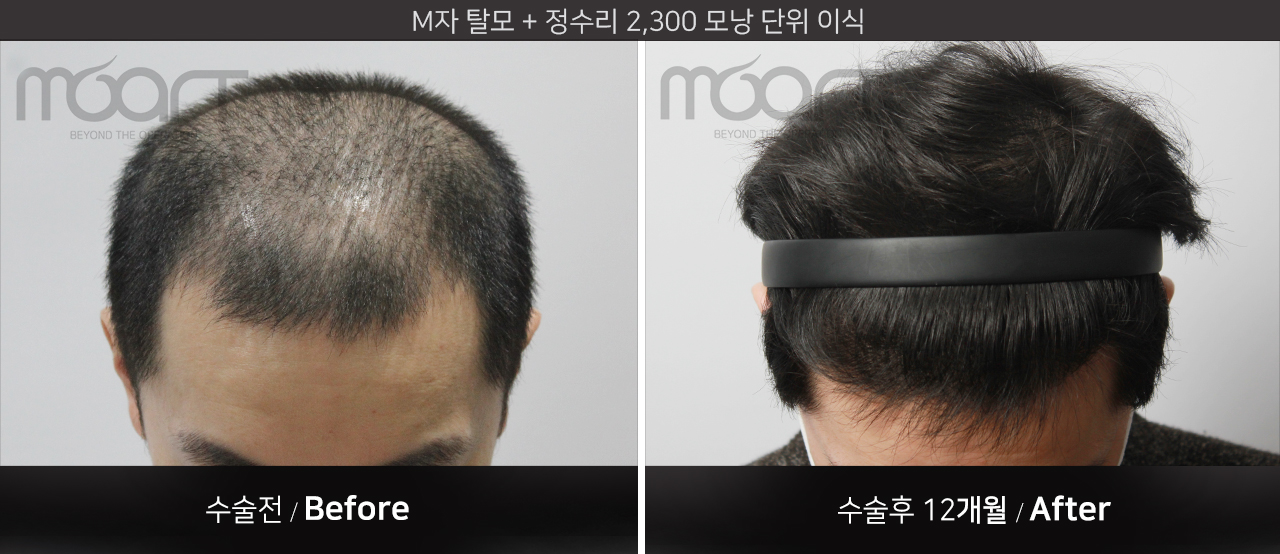 모발 이식 전 -> 모발 이식후 12개월 경과