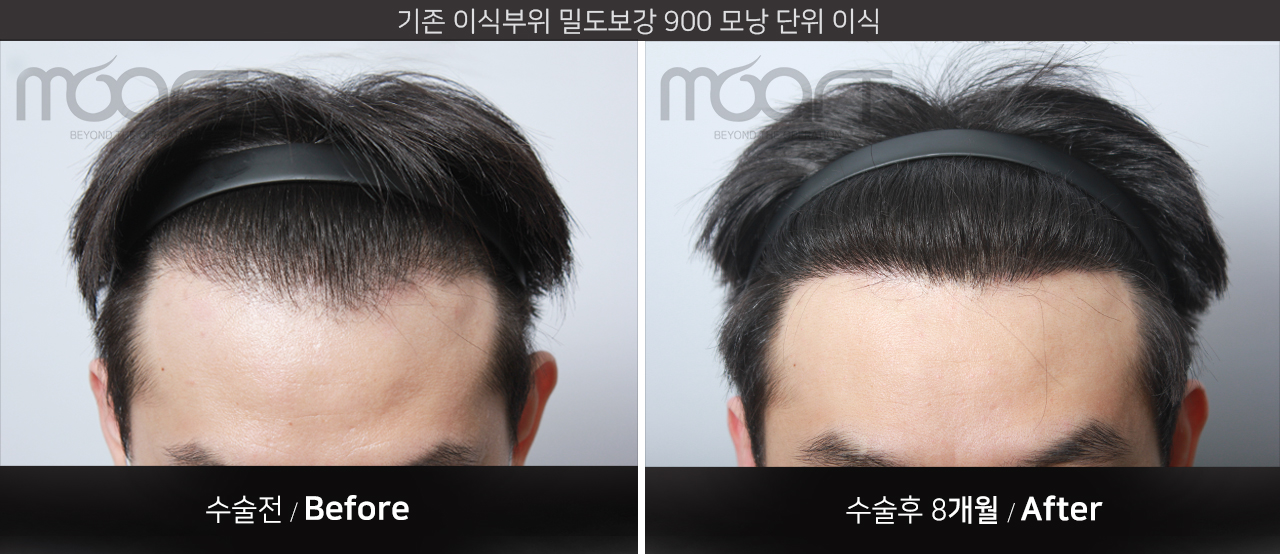 모발 이식 전 -> 모발 이식후 8개월 경과