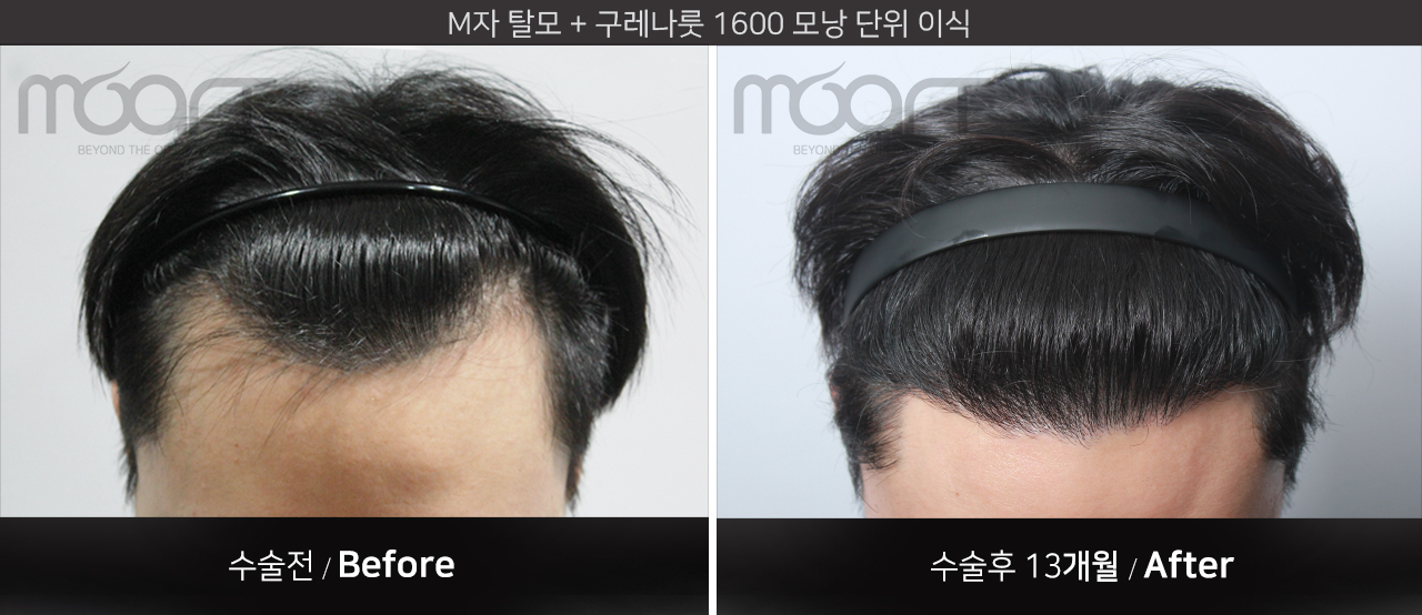모발 이식 전 -> 모발 이식후 13개월 경과