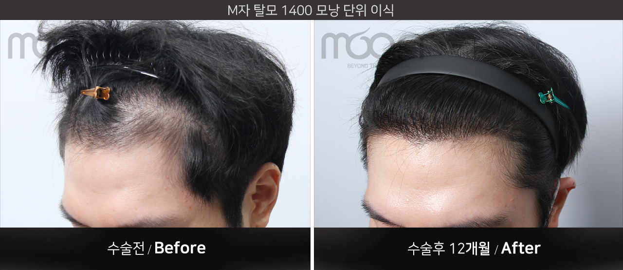 모발이식 전 -> 수술 후 12개월