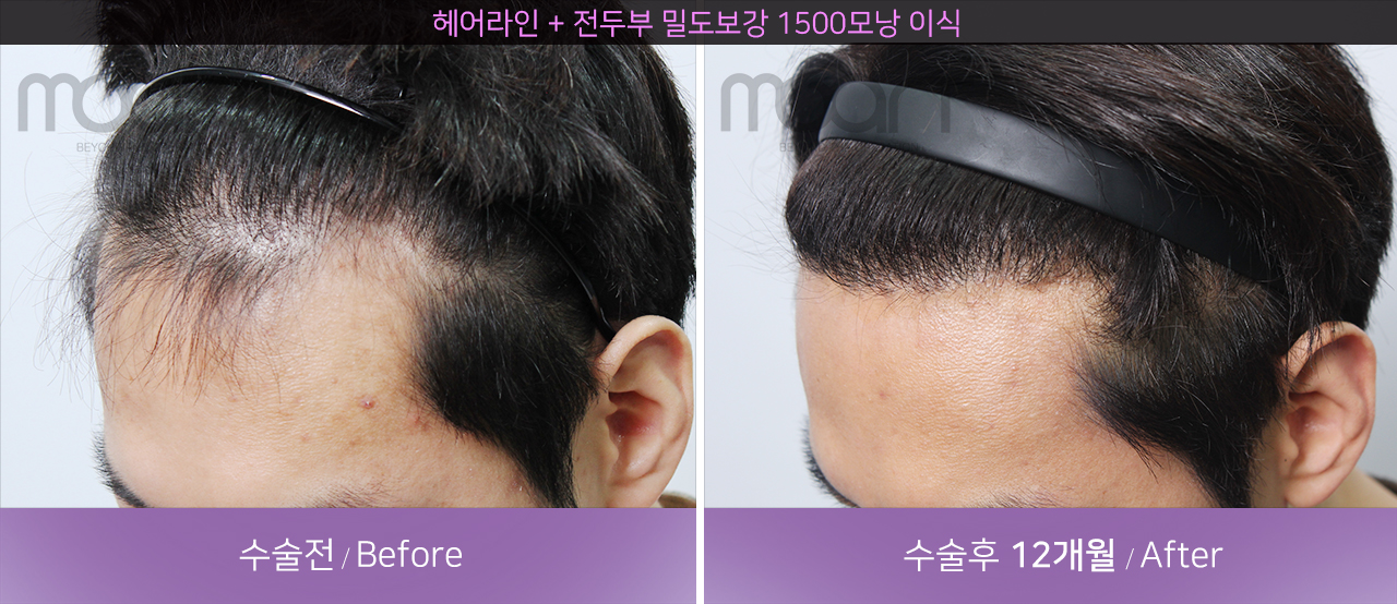 모발이식 전 -> 수술후 12개월