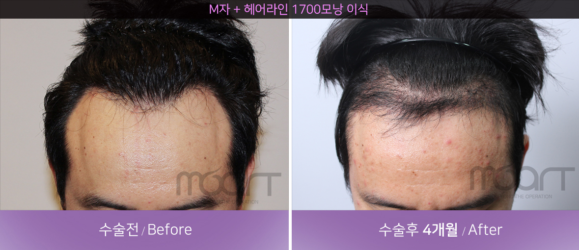 모발이식 전 -> 수술후 4개월