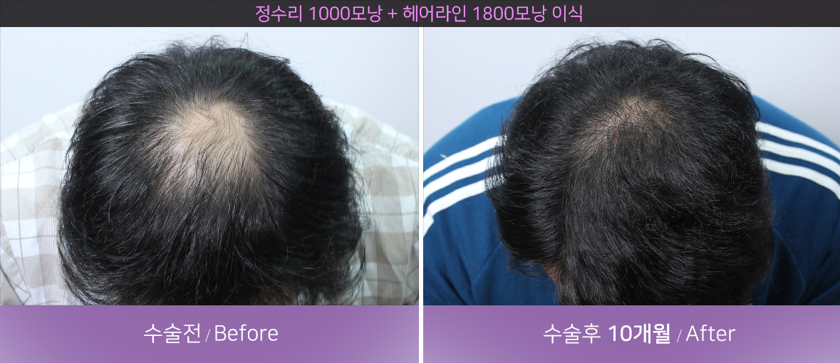 정수리 1000모낭 + 헤어라인 1800모낭 이식