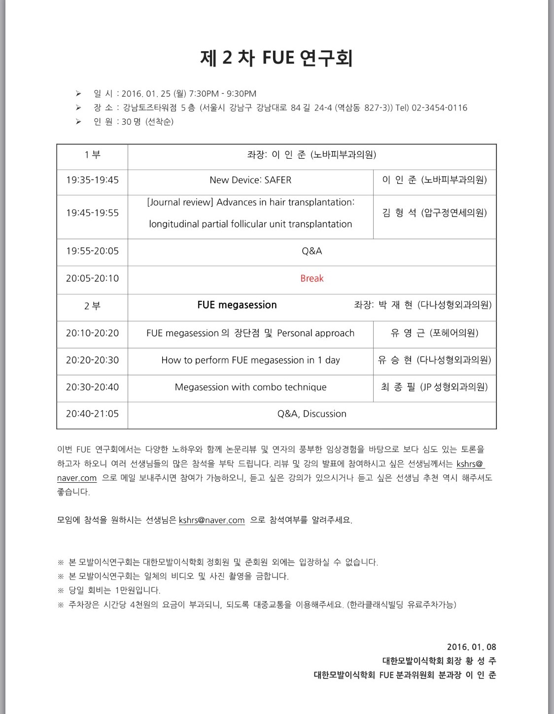 | 2016.01 대한 모발이식 학회(KSHRS) 제2차 비절개 연구회 강의 |