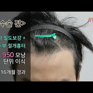 M자 밀도모강 + 후두부 절개흉터 950모낭 단위 이식 1년 4개월 경과