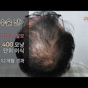 M자 탈모 + 정수리 2,400모낭 단위 이식 12개월 경과