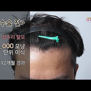 M자 탈모 + 정수리 1,000모낭 단위 이식 12개월 경과