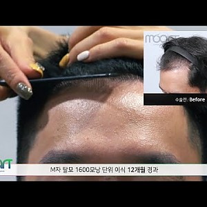 M자 탈모 800모낭 단위 모발이식 12개월 경과