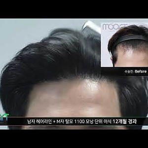 남자 헤어라인 + M자 1100모낭 단위 이식 12개월 경과