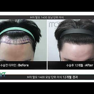 M자 탈모 1400 모낭 단위 이식 12개월 경과